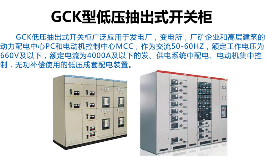 GCK-低壓抽出式開關(guān)柜適用于發(fā)電廠、冶金、石油化工、輕工紡織、港口碼頭、大樓賓館等場(chǎng)所作為交流三相四線或五線制、電壓380V、頻率50H2電力系統(tǒng)的配電和電動(dòng)機(jī)控制之用。