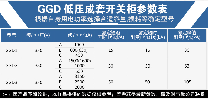 GGD型交流低壓配電柜適用于交流50Hz,額定工作電壓380V,額電工作電流至3150A的配電系統(tǒng),可用于發(fā)電廠、變電站、工礦企業(yè)等電力用戶作為動力、照明及配電設備的電能轉換、分配與控制之用。